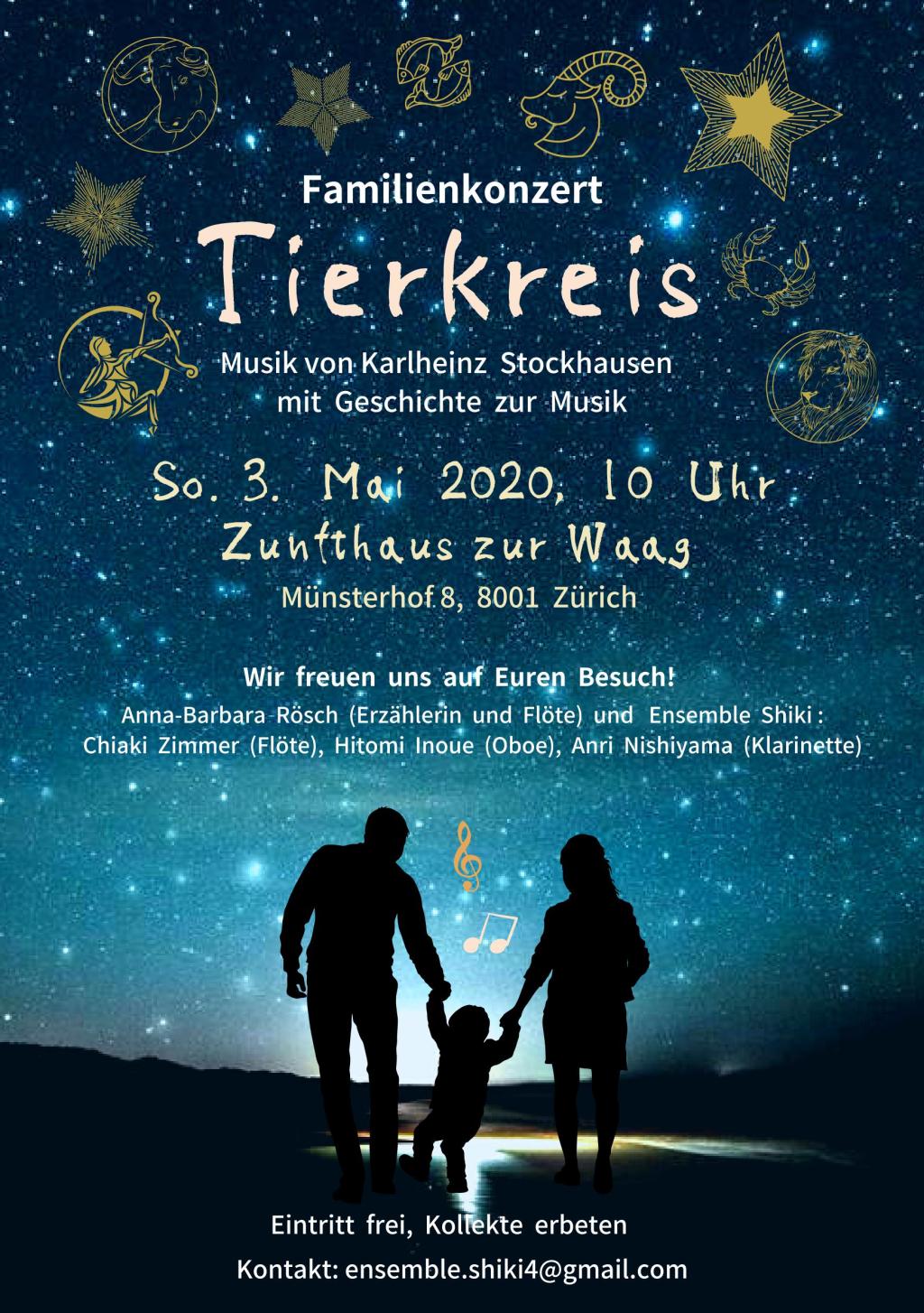 Tierkreisはもともと「6人の打楽器奏者とオルゴールのためのMusik im Bauch」という作品の中で12星座のメロディーとして作曲されました。それを独立して「メロディー、もしくは伴奏楽器とのためのTierkreis」として出版。この曲は他にも作曲家によって室内オーケストラ、クラリネット・フルート・トランペットのトリオや歌と鍵盤楽器などの編成に編曲されています。シュトックハウゼンは12星座の性格を勉強し、自身の子どもや友人・知人のことを星座を踏まえて思い起こしながらメロディーを作曲、そして歌詞も自分で書きました。