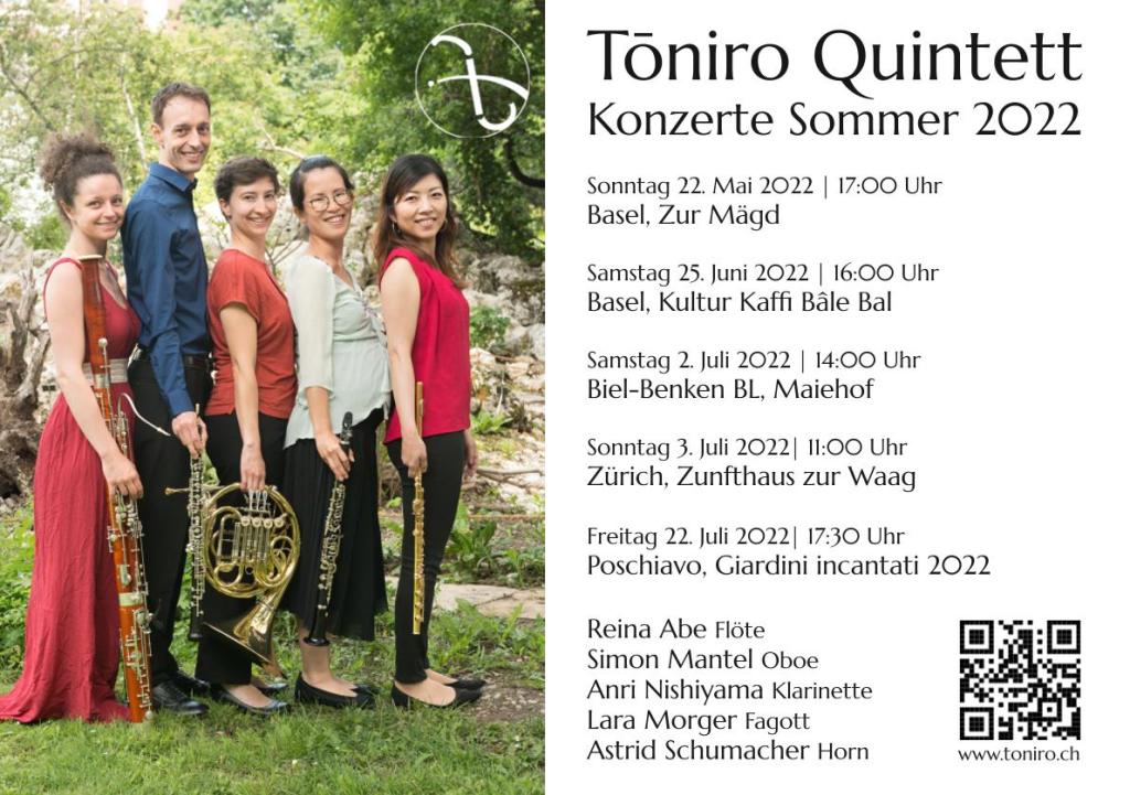 木管五重奏≪Toniro≫が今夏、5回演奏会をします。